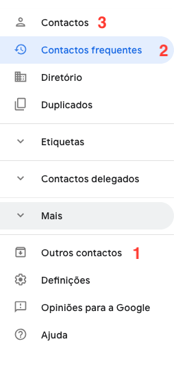 - Os contactos com maior frequência, aparecem em Contactos frequentes (não sincroniza com telemóvel)