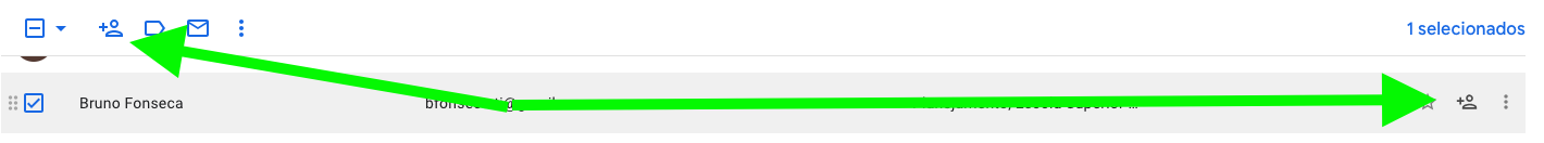 - Para sincronizar um contacto criado no email, click no ícone criar contacto. Obs.: contactos criados no telemóvel são automaticamente visualizados em contactos do Google Contactos