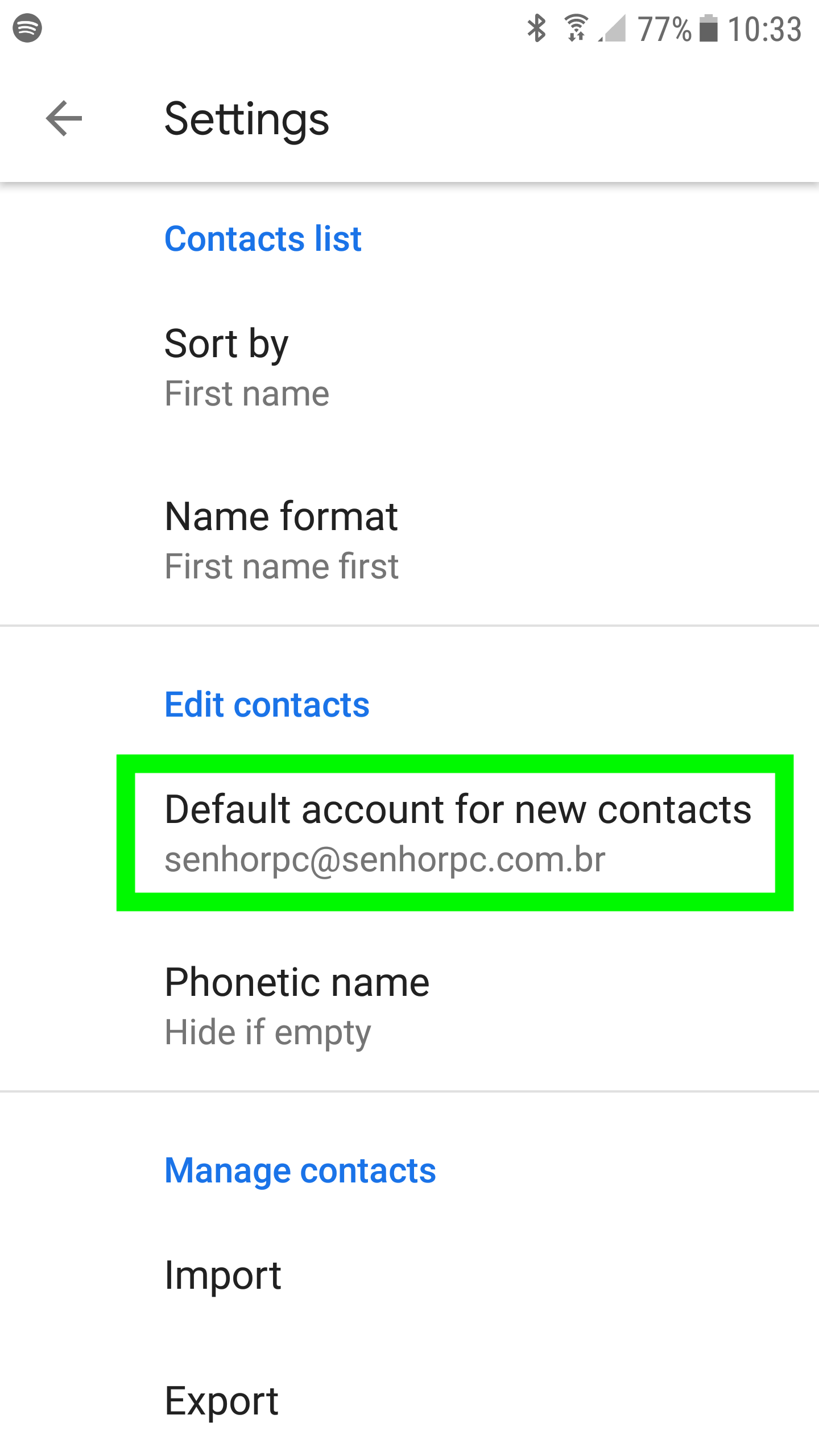 - Instale o Google Contacts mais simples para gerenciar a conta por defeito, quando usar mais de uma conta Google